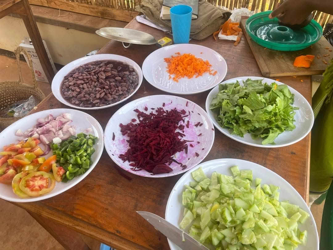 - Nutritional Support: Fresh, organic vegetables grown on-site and nutrition education help tackle malnutrition’. To change to ‘Fresh, organic vegetables grown on-site and nutrition education of 6 food groups help tackle malnutrition. Onsite permaculture training to both mothers and fathers is given in the permaculture garden and families supplied with a watering can and seeds to start their own small garden at home.